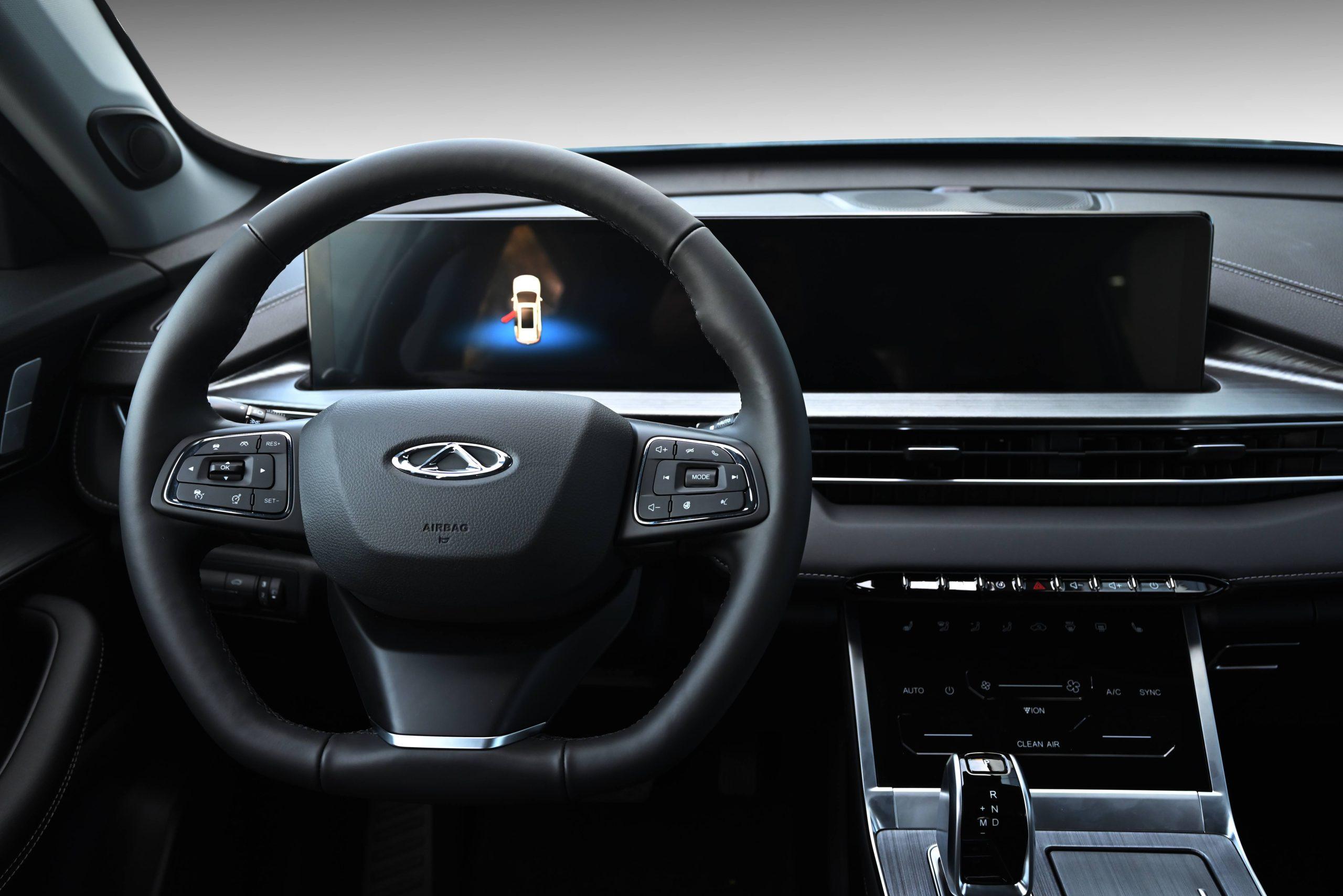 El TIGGO 7 Pro ofrece un interior amplio y confortable; cuenta con 5 plazas, tapizado interior en cuero ecológico, techo panorámico, pantallas LED de 12,3” con conectividad inalámbrica, cámara 360°, sistema de audio premium SONY, asientos eléctricos delanteros y climatización tri-zona, para una experiencia premium.